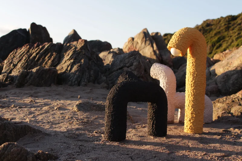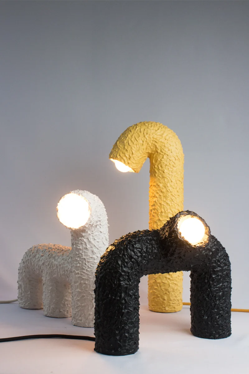 As children, we develop images and make-believe creatures in our own worlds.These, in turn, help us establish connections with others over time – giving us confidence through their presence. The Animal Lights series of lamps by Studio Bovti expresses this story through their forms. Consisting of the Dino, Monkey, and Worm lights, the connection to our own inner child exudes through their highly playful forms. The expression of light-heartedness and joy is supported by the atmospheric light, which provides warmth and calms the inner spirit. The playful, colorful structures produce a smile on viewers‘ faces.