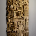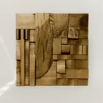 Each Wood Collage panel is a one-of-a-kind composition, randomly assembled from recycled hardwood remnants. The result is a warm, richly textured surface that brings a meditative atmosphere to any space. Carefully sanded to a smooth finish and sealed with matte lacquer and wax, these pieces radiate both raw energy and serene stillness—a kind of chaotic brutalism born from chance.