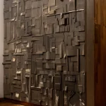 PRICED BY THE SQUARE FOOT, these modular panels serve as both decorative wall art and functional acoustic baffles, ideal for large interiors. No two panels are alike; each is an unpredictable collage that can be arranged in any sequence. The client becomes part of the creative process, free to curate and configure the layout as desired.