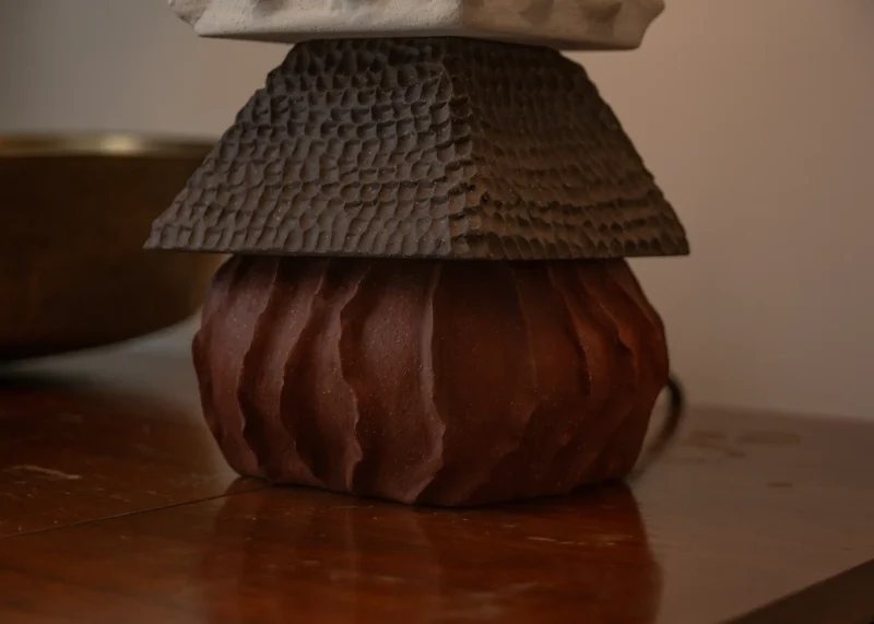 apapuchi lamp artisan lighting artistic lighting Ceramic lamp Collectible Lighting Contemporary lighting Cultural design Design object Designer lamp Functional sculpture hand-built heritage design interior lighting Mexican design Sculptural lighting statement lamp Table lamp textile shade