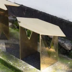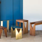 The stools and side tables in this collection are produced in solid wood or casted metal. The project came from an experimentation of triangular shapes and cutouts that are common in country stools. The repetition, the rythm and strenght of these cutouts give the pieces a timeless freshness. Different dimensions and shapes enrich the collection, allowing the pieces to be utilized as stools or as side tables.