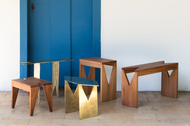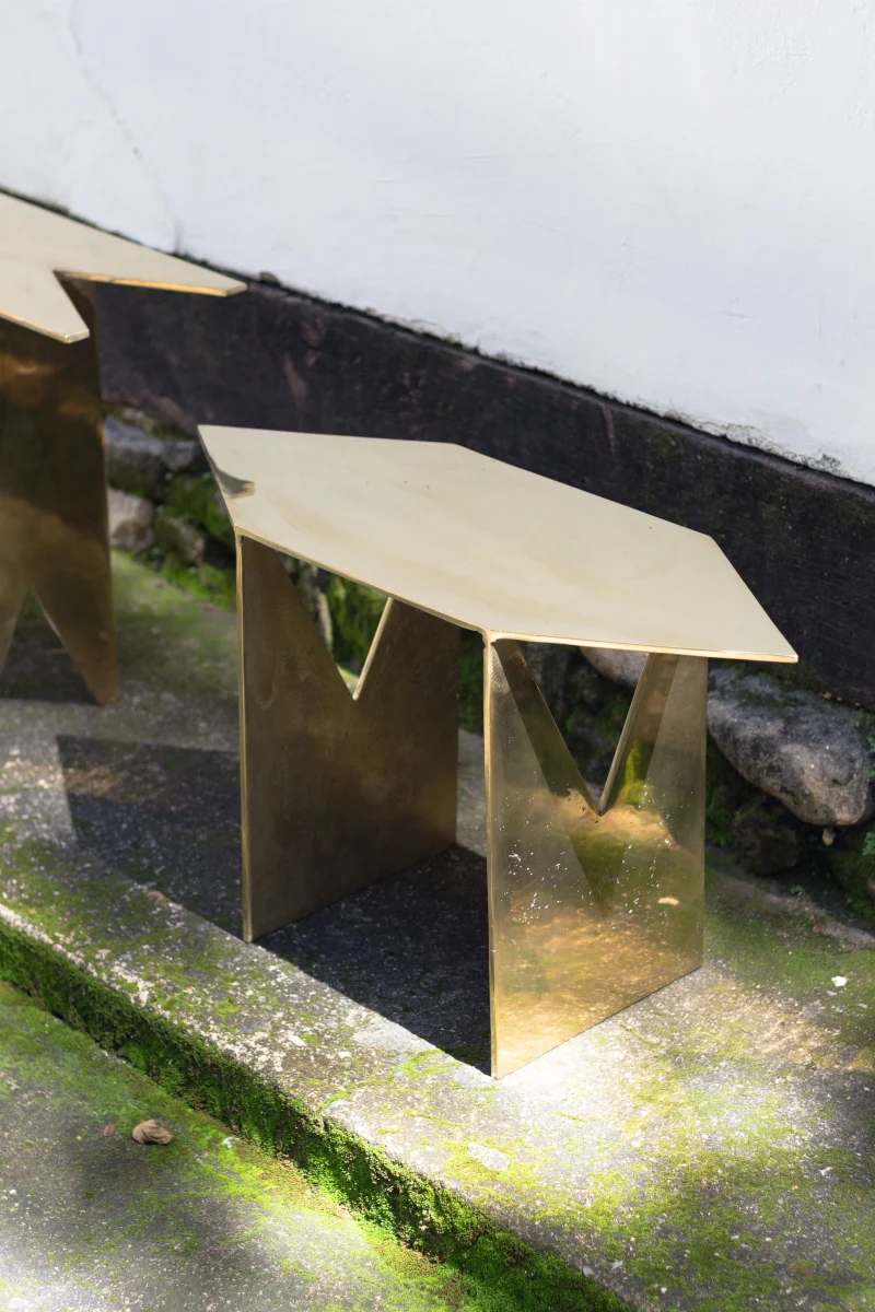 The stools and side tables in this collection are produced in solid wood or casted metal. The project came from an experimentation of triangular shapes and cutouts that are common in country stools. The repetition, the rythm and strenght of these cutouts give the pieces a timeless freshness. Different dimensions and shapes enrich the collection, allowing the pieces to be utilized as stools or as side tables.