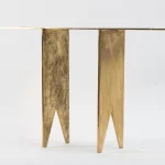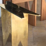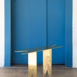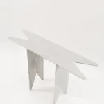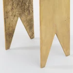 The stools and side tables in this collection are produced in solid wood or casted metal. The project came from an experimentation of triangular shapes and cutouts that are common in country stools. The repetition, the rhythm and strength of these cutouts give the pieces a timeless freshness. Different dimensions and shapes enrich the collection, allowing the pieces to be utilized as stools or as side tables.
