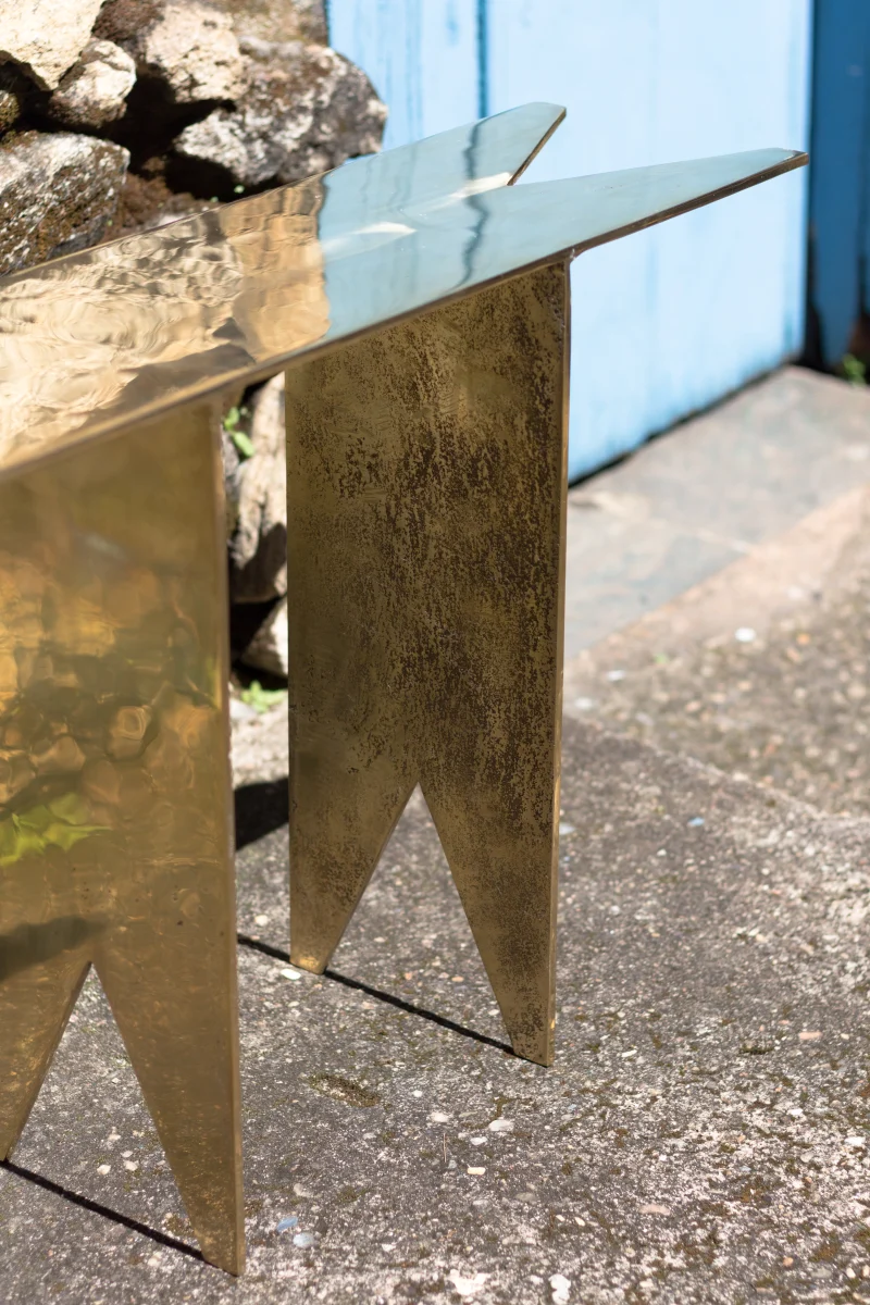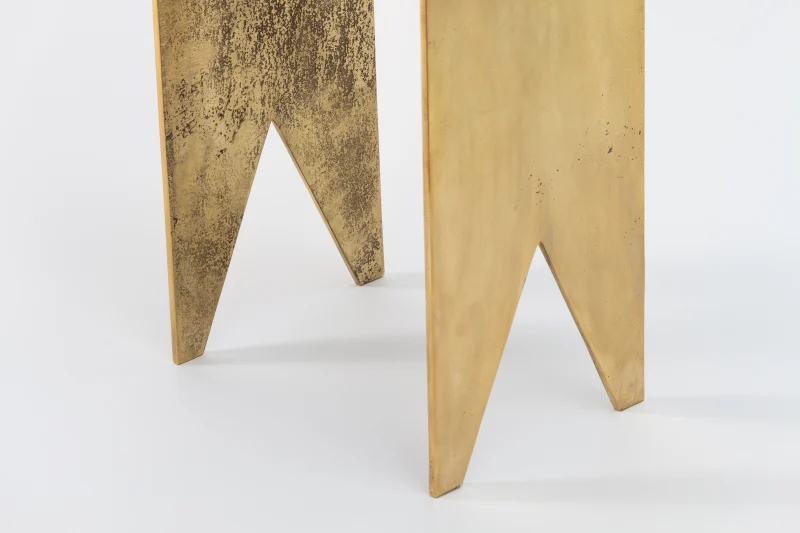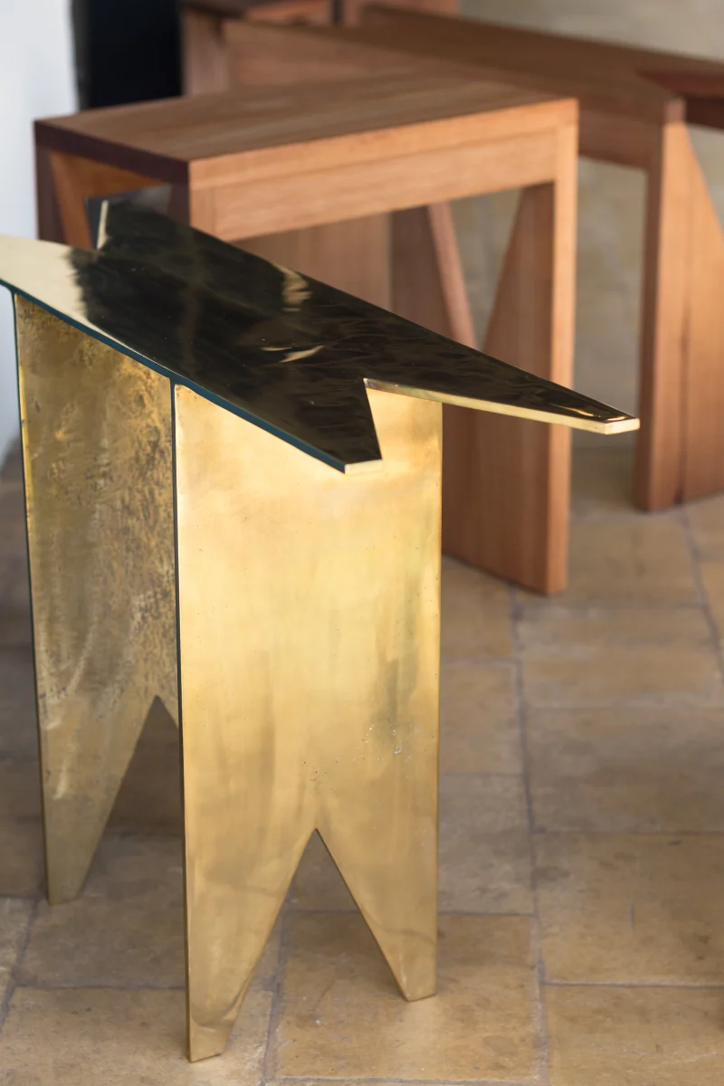 The stools and side tables in this collection are produced in solid wood or casted metal. The project came from an experimentation of triangular shapes and cutouts that are common in country stools. The repetition, the rhythm and strength of these cutouts give the pieces a timeless freshness. Different dimensions and shapes enrich the collection, allowing the pieces to be utilized as stools or as side tables.