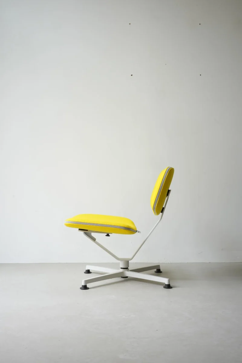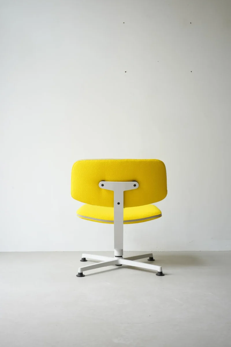 The ARBA Lounge Chair By Erwan Bouroullec is a simple yet refined composition of two molded plywood elements, a cross-like structure of bent metal profiles and a die cast aluminium base. In its clarity, the composition communicates directly with the user. The chair has nothing to hide and yet it surprises us once we sit in it. Seat and back are perfectly shaped and positioned, the central spine adds the dynamic movement typical of flat sheet metal, to which the base adds a pleasant swivel function. The chair keeps the formal purity of an experimental prototype while it is a well-thought and precisely made industrial product that comes in a flat box and can be mounted with a few simple actions.