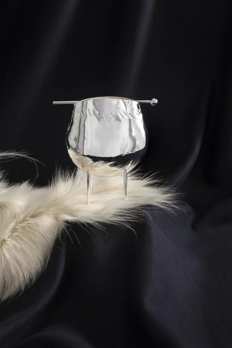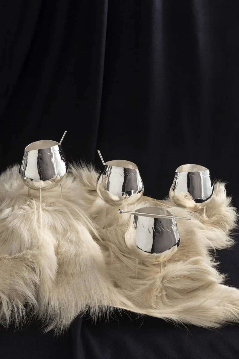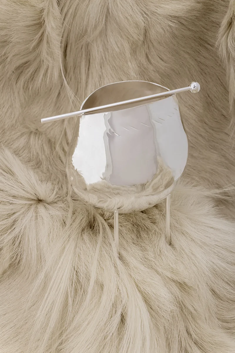 A traditional goats’ bell reversed, reworked, and upcycled into a luxurious accessory for the home.