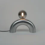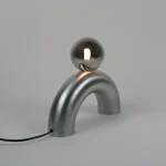 The Arcora is a modern and versatile lighting solution that seamlessly merges artistic design with practicality. Its aluminum body is sculpted into a distinctive arc, evoking a sense of fluidity and movement. This elegant curve is topped with a sophisticated grey globe, softly illuminating your space with a warm and inviting glow. At the peak of the arc, a black pearl detail adds a touch of refined luxury, transforming the lamp from a simple lighting fixture into a statement piece.