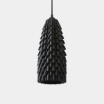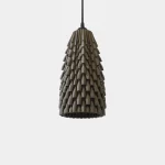 The lampshade is made of a biodegradable composite material comprised of birch fibers and PLA, a renewable compound based on corn.