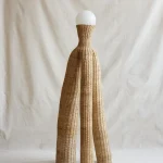 This artistic, boho chic floor lamp, designed by Lørdag & Søndag in Mexico City and hand-woven by master artisan Don Claudio in the Sierra Madre Oriental of Oaxaca, Mexico, showcases traditional woven wicker techniques. The lamp uses G’noo Xombé Nisin fiber, without the need for any interior metal structure, reflecting the rich cultural heritage of Mexico.
