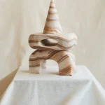 The Artefacto Marble collection, a collaborative design effort by Salvador and Enzo Compañ, comes to life through the skilled hands of artisans at Taller Téllez, situated in Tecali—a town aptly named “stone house” in the Náhuatl language of the region, located in the state of Puebla, Mexico. Meticulously crafted, each Artefacto undergoes a manual transformation, shaped by the artistry of hammer, chisel, and grinder.