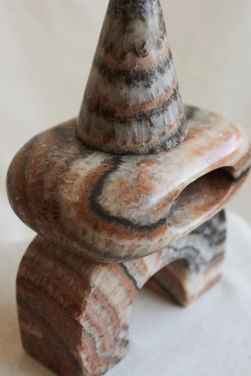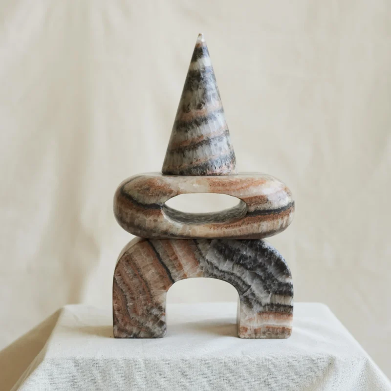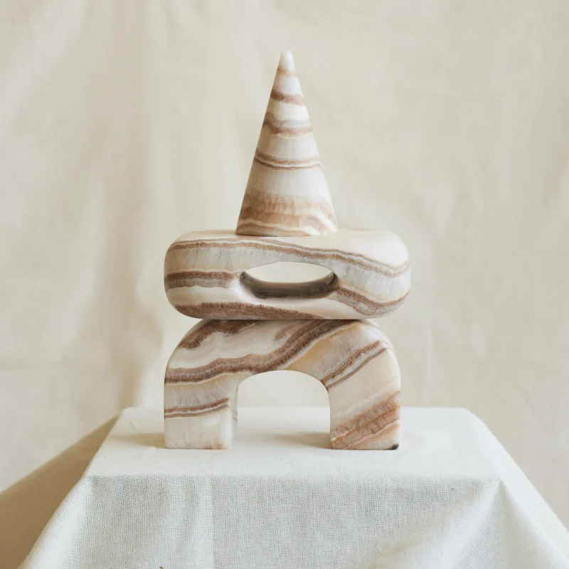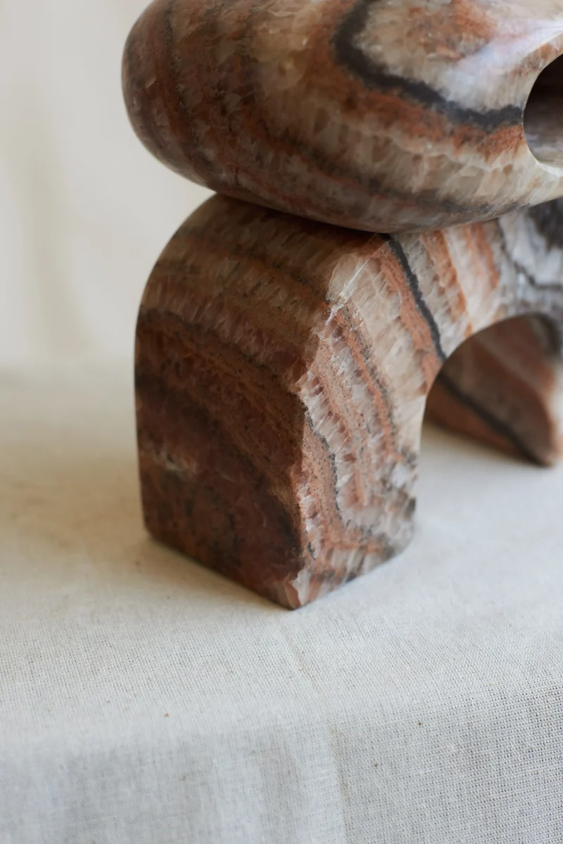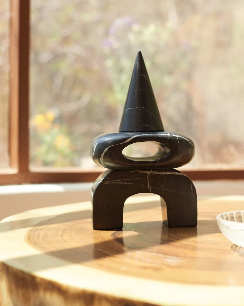 The Artefacto Marble collection, a collaborative design effort by Salvador and Enzo Compañ, comes to life through the skilled hands of artisans at Taller Téllez, situated in Tecali—a town aptly named “stone house” in the Náhuatl language of the region, located in the state of Puebla, Mexico. Meticulously crafted, each Artefacto undergoes a manual transformation, shaped by the artistry of hammer, chisel, and grinder.