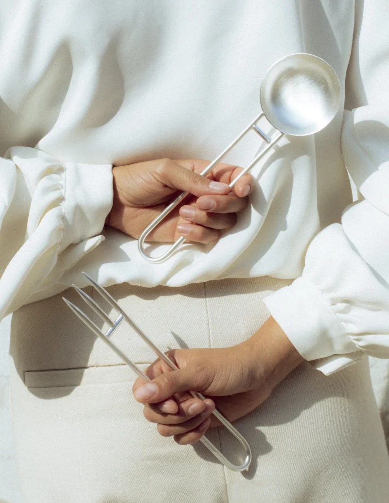 Elevate your dining experience with our Artefacto Servers. A fork and spoon – meticulously crafted from plated brass. Inspired by Art Deco-like geometric forms and ornamental symbolism, this collection effortlessly combines modern aesthetics with subtle nods to craftsmanship and tradition. Each piece draws inspiration from Criado’s past work in jewelry design, creating an eclectic fusion of Italian and Colombian craftsmanship. The result is a set that embodies perfect poise, balance, and weight, making it a unique and stylish addition to your table setting.