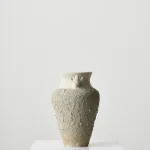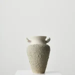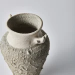 Thrown on the wheel by Twig & Beetle, in a stony white clay body. Post-wheel a slip mixed with oxide was applied creating a wave-like texture. Handles were sculpted by hand and aligned by eyesight, mimicking antlers.