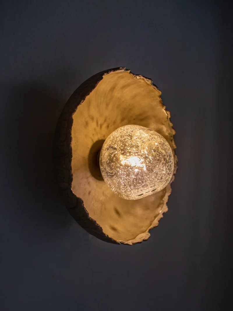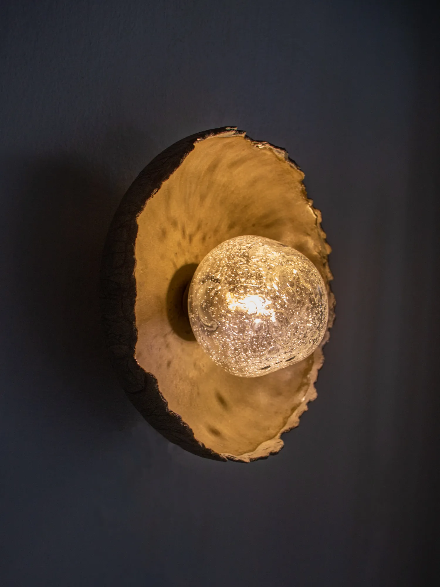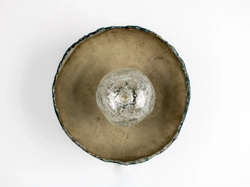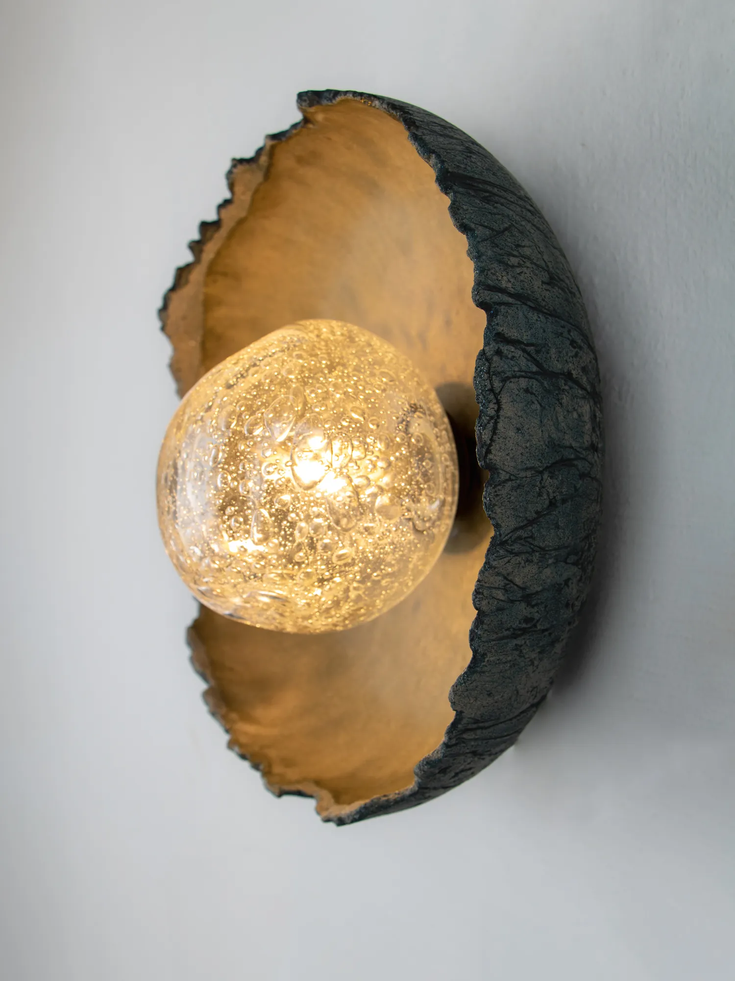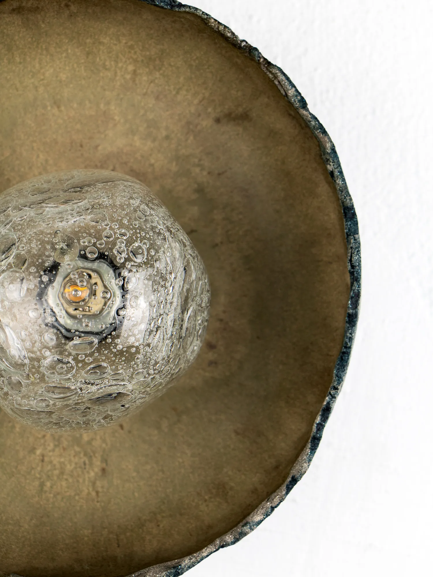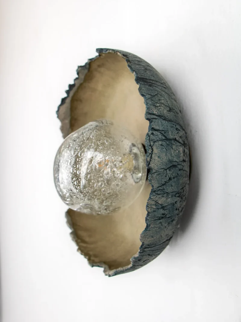 This piece is handmade and built from stoneware porcelain and hand-blown glass. G9 Bulb.