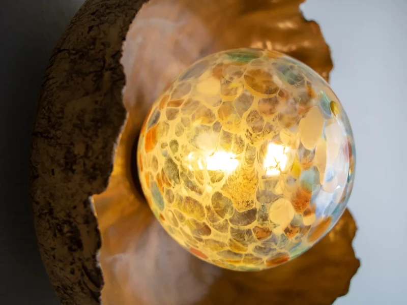 This piece is handmade and built from stoneware and hand-blown glass. G4 Bulb.