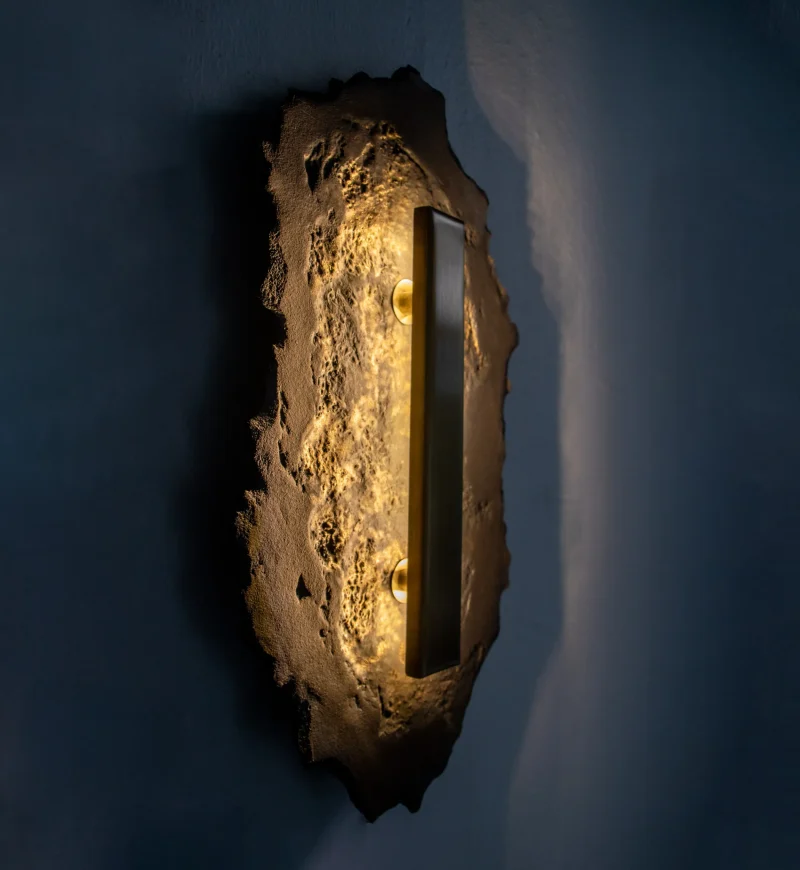 This piece is handmade and built from stoneware. One of a kind. LED light.