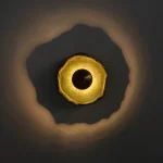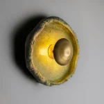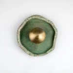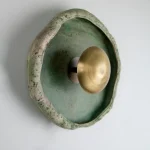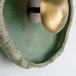 This piece is handmade and built from stoneware and brass. LED light.