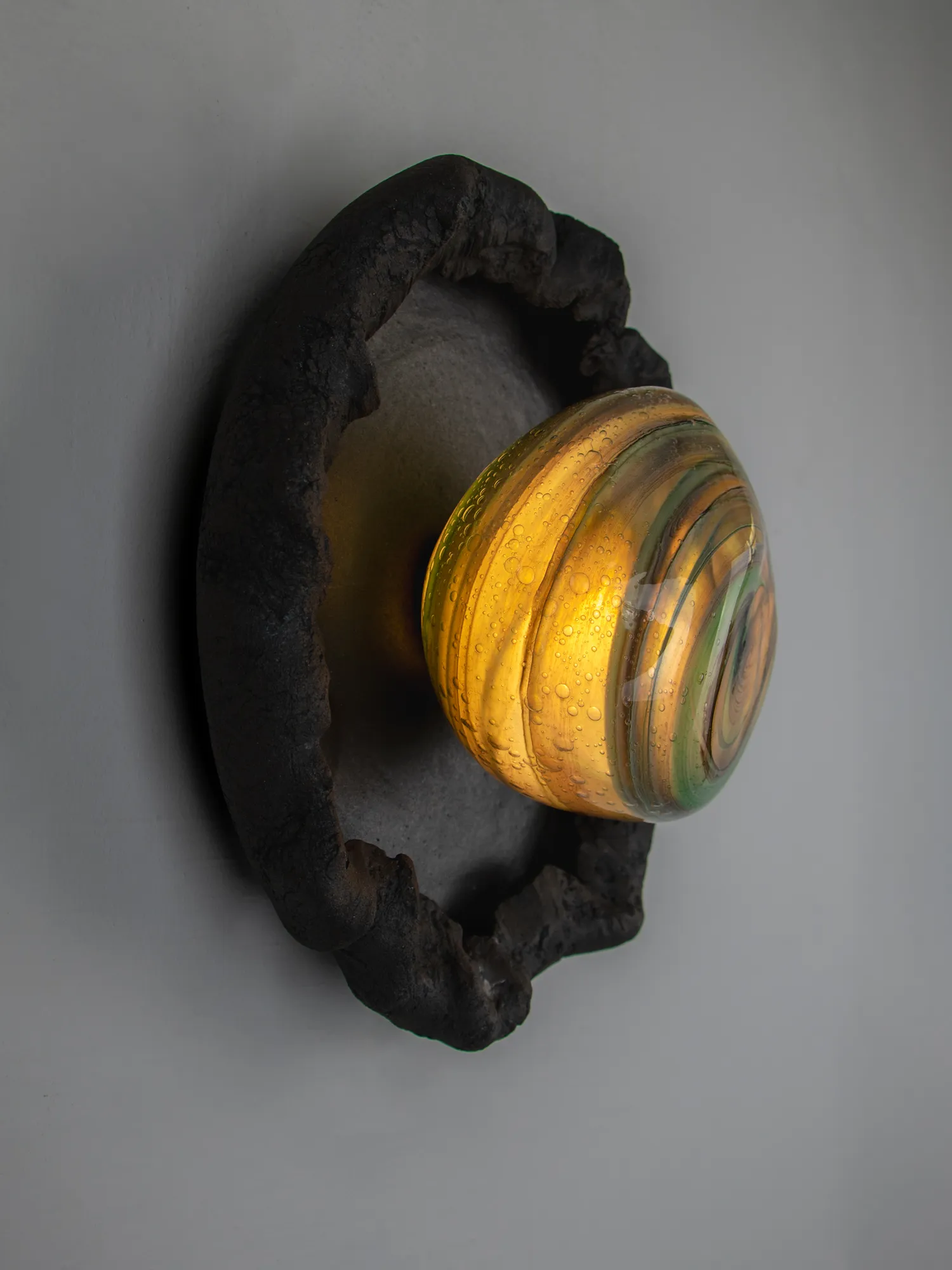 This piece is handmade and built from stoneware porcelain and hand-blown glass. G9 Bulb.