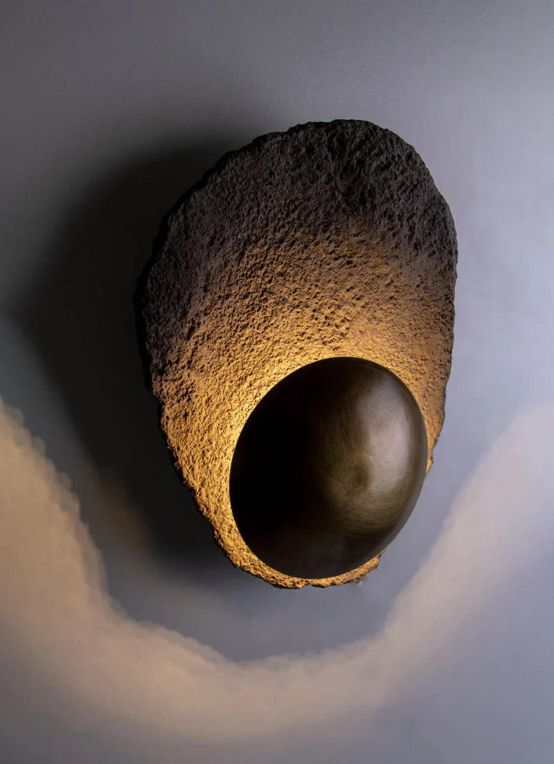 This piece is handmade and built from stoneware. One of a kind. LED light.