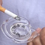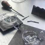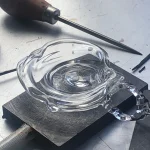 This piece by Rain and Rivers is an individual ashtray made using resistant borosilicate glass, as a part of the ongoing series “rain and rivers” which explores the fluidity of water through fire practices.