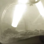 Buşra Tunç, who frequently works with items which point at industrial production processes, follows a similar path in this study. In this work, the specimen jar is filled with Phosphor and glass powder, which are used in the production of fluorescence lights. The display of the materials that constitute the tubes structurally states a prioritization of the very nature of objects.