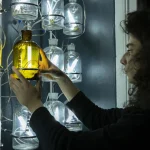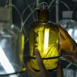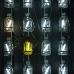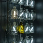 Enclosed within a laboratory-style specimen jar, a tinted T4 fluorescent tube glows as a relic of obsolete technology. The piece echoes both scientific preservation practices and museological display strategies. By isolating the fluorescent in a sealed environment, it highlights its transition from an everyday light source to a fragile, archival object.