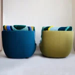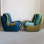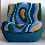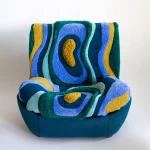 The Atlantis armchair, crafted at the Silesian Furniture Factory in Świebodzin, Poland, is a rare handmade piece. Its compact design suits even small spaces, combining comfort with striking aesthetics. The hand-tufted, multicolored wool seat and backrest make each chair unique, with slight variations adding to its charm. Designed for exceptional comfort, it’s as inviting as it is visually captivating.