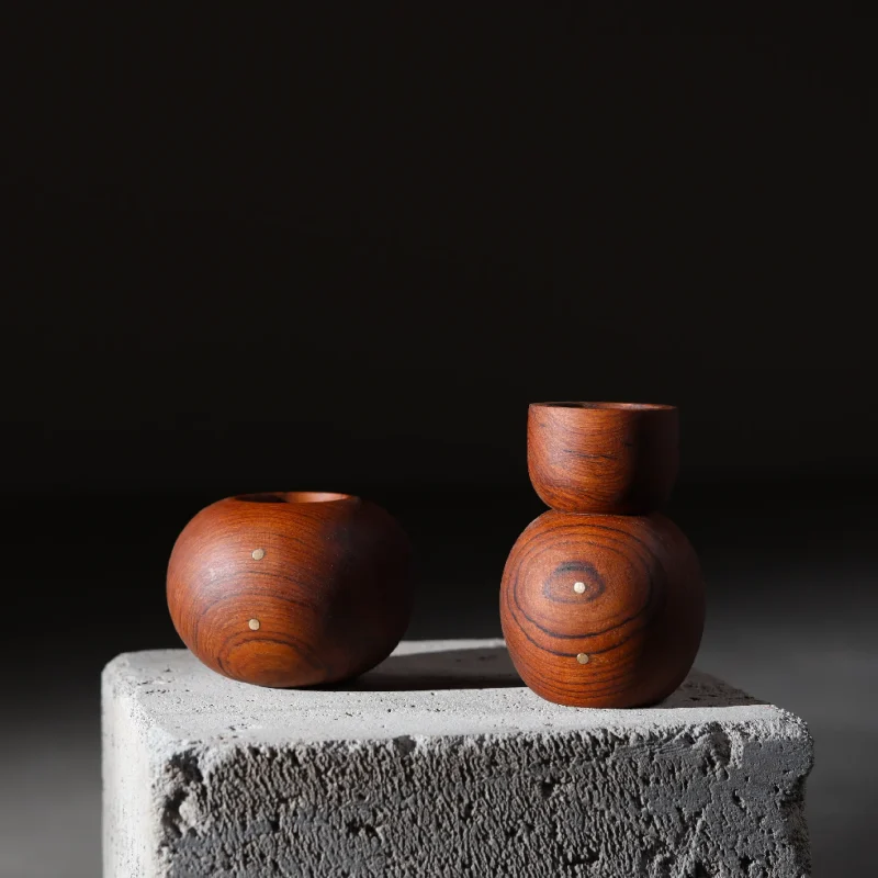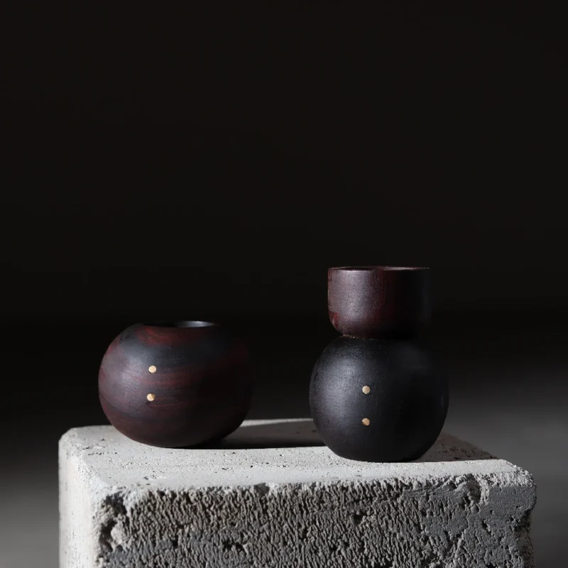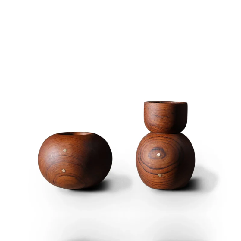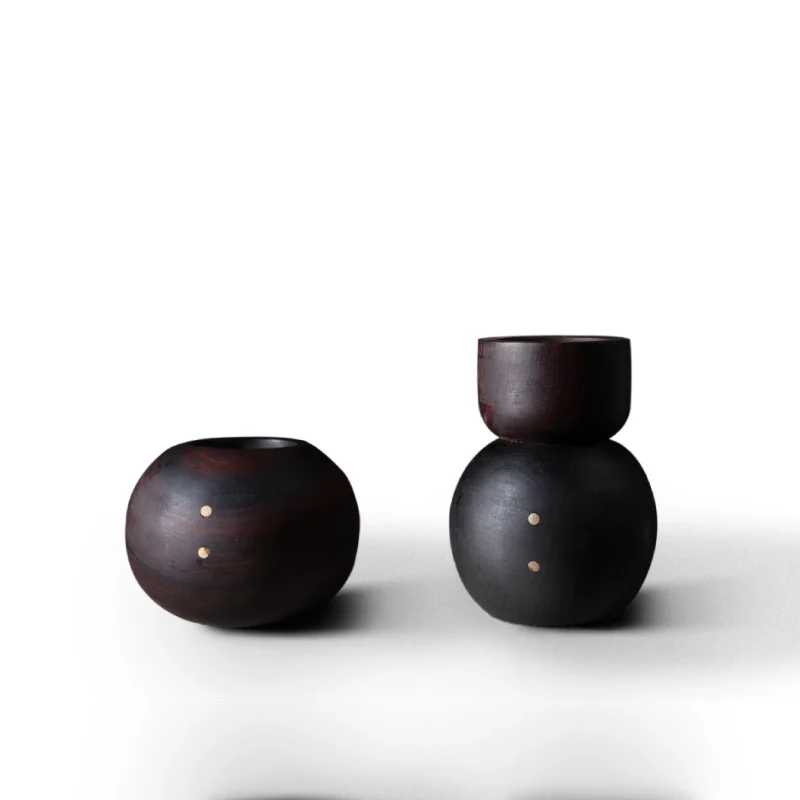Crafted from wood with delicate brass inlays, these objects are meticulously made by skilled artisans, showcasing subtle nuances in texture, shape, and finish.