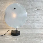 By letting light through, the porcelain becomes translucent, creating a special glow effect with a center inside and a halo around it, reminiscent of the aura of a living creature.