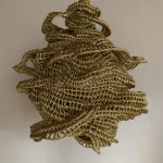 This sculptural lamp embodies a deliberate tension: the interplay of strength and fragility, structure and imbalance, brutality and subtle nuance. It stands as a testament to the beauty found in contradictions, a refusal to conform to traditional notions of perfection.