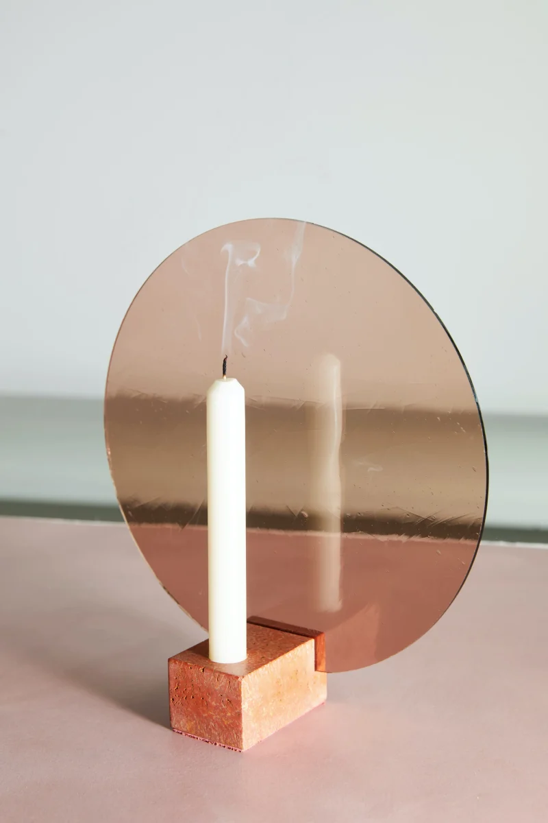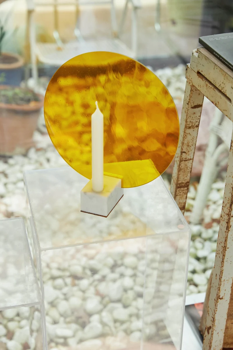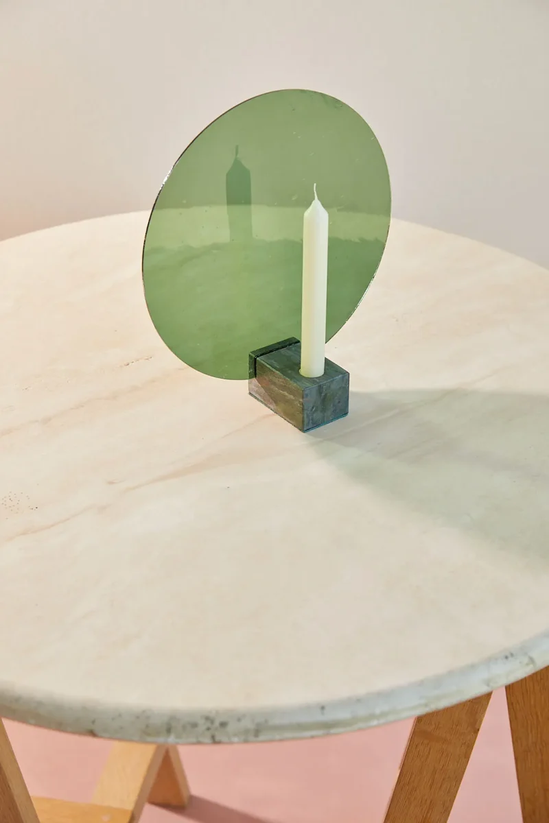 Aureool by Anto Loua fills the void with a touch of vibrant color, beckoning those seeking serenity. Meticulously handcrafted by skilled stonemasons, each candle holder is fashioned from remnants of natural stone discovered in their studio. The exquisite glass, expertly mouth-blown, lends a mesmerizing allure with delicate air bubbles and captivating structure that awaken in the gentlest of hues.