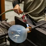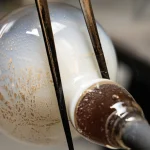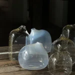 Through careful experimentation of the traditional glass-blowing technique, the vases were fused with very fine sheets of 23-karat gold, which fragmented and expanded during the blowing process, as if cosmically, forming tiny constellations dictated by the whims