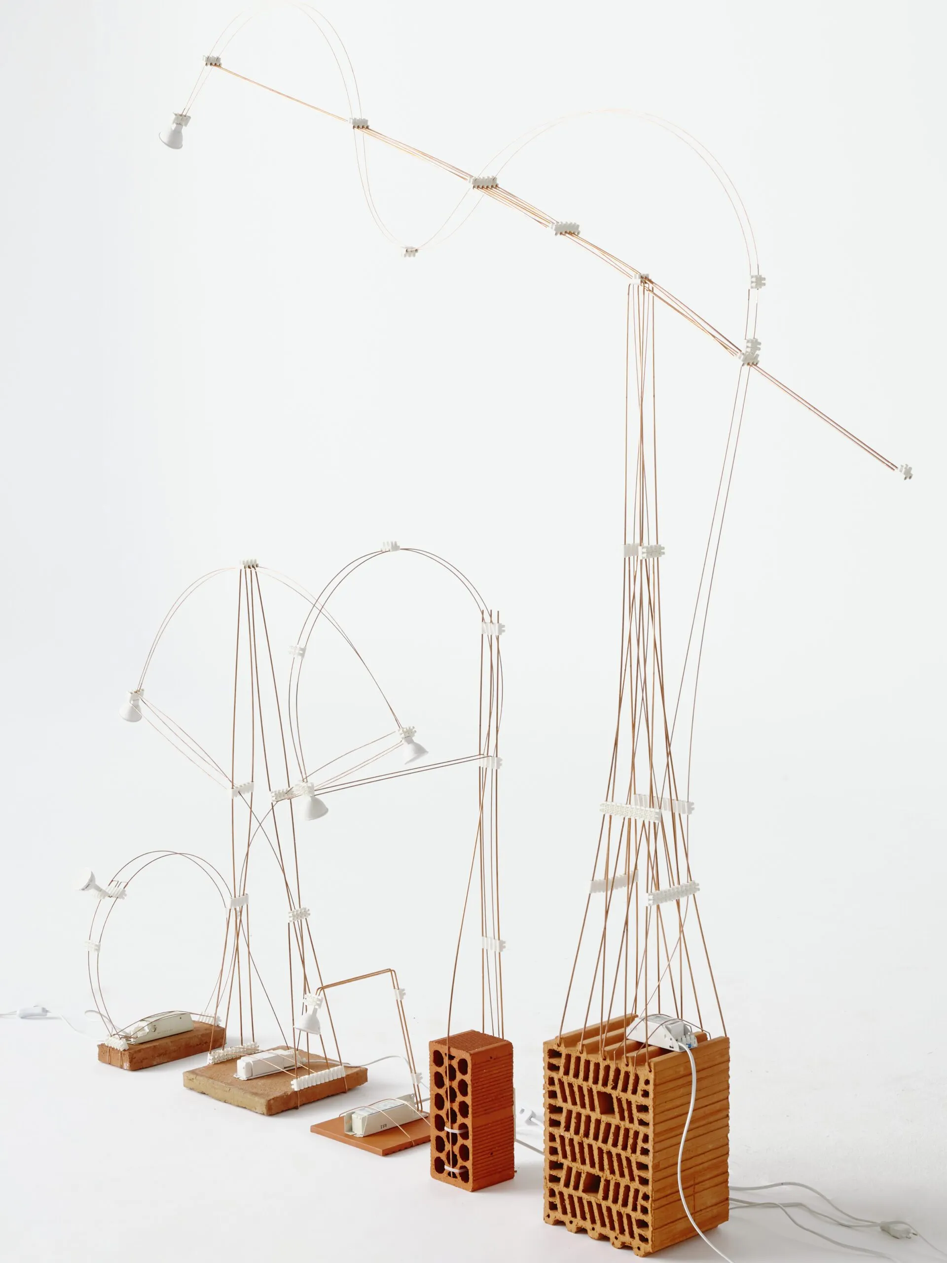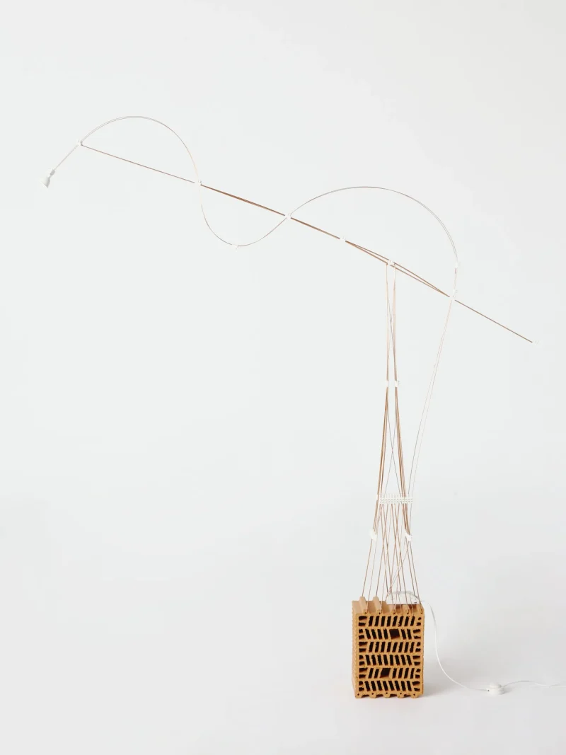 B.A.R.E ‘Tall’ Floor Lamp is a piece that forms part of the series Brick, Appliances, Rods and Electricity (B.A.R.E). This collection of lamps is produced with bricks or tiles on the bases, from which iron rod structures and electric quick connectors grow to bring the light to the lamp. With these simple systems, Lucas Muñoz Muñoz creates lighting elements that are easy to produce and have a low cost. This is why they are manufactured by the students of the Asociación Norte Joven in their electricity module / workshop, thus adding the designer a social bias to the project.