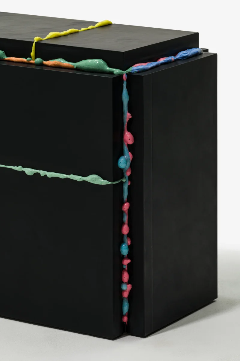 By defining the design process, I aim to explore new possibilities between planning and variables. The B.S.P. series begins with research on how to recycle plastic by-products. The name B.S.P. is inspired by the abbreviation of the B.L.T. club sandwich and stands for By-product, Solvent, and Plastic, which are the materials used in production. As an industrial designer, I focus on the plastic flakes generated while creating various design prototypes using CNC machining and 3D printing. For this project, I tested different amounts of solvent, types of plastic, and reaction times in a physical chemistry lab. I discovered that a specific type of plastic melts in organic solvents after a particular duration. Due to their large surface area, tiny flakes or small parts from failed prototypes dissolve more easily in minimal amounts of solvent. I also made a recycled plastic plate using discarded large pieces. Through this research, I can reinterpret plastic suitable for mass production as a handcrafted material, bonding plastic with by-products. The final product solidifies as the solvent evaporates, creating objects reminiscent of spilled cheese that intrigue viewers and offer a new aesthetic. I designed art furniture using this process, which can be applied to various shapes and colors.