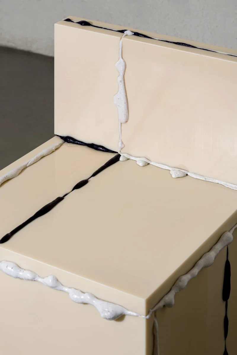 By defining the design process, I aim to explore new possibilities between planning and variables. The B.S.P. series begins with research on how to recycle plastic by-products. The name B.S.P. is inspired by the abbreviation of the B.L.T. club sandwich and stands for By-product, Solvent, and Plastic, which are the materials used in production. As an industrial designer, I focus on the plastic flakes generated while creating various design prototypes using CNC machining and 3D printing. For this project, I tested different amounts of solvent, types of plastic, and reaction times in a physical chemistry lab. I discovered that a specific type of plastic melts in organic solvents after a particular duration. Due to their large surface area, tiny flakes or small parts from failed prototypes dissolve more easily in minimal amounts of solvent. I also made a recycled plastic plate using discarded large pieces. Through this research, I can reinterpret plastic suitable for mass production as a handcrafted material, bonding plastic with by-products. The final product solidifies as the solvent evaporates, creating objects reminiscent of spilled cheese that intrigue viewers and offer a new aesthetic. I designed art furniture using this process, which can be applied to various shapes and colors.