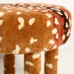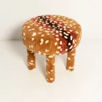 This Bambi Wool Stool dates back to the late 1960s and early 1970s, offering a distinctive blend of vintage character and contemporary artisanal quality. Upholstered in beautiful, one-of-a-kind wool fabric, the piece stands out through its unique texture and form.