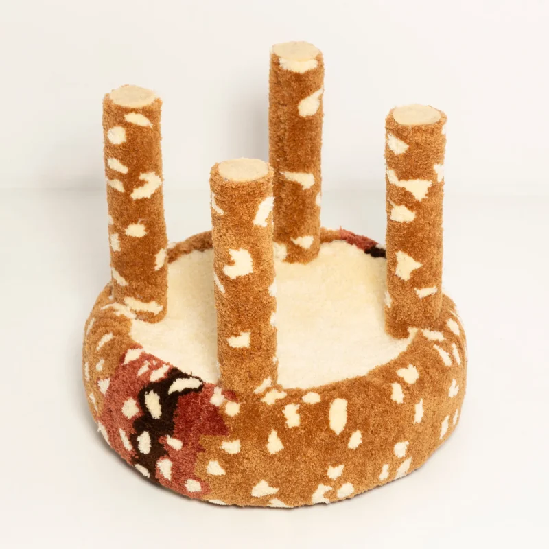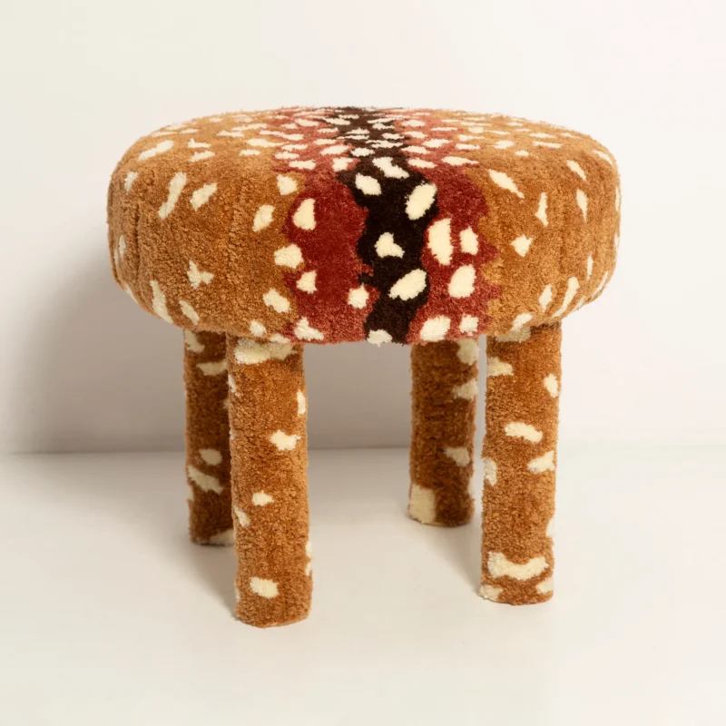 This Bambi Wool Stool dates back to the late 1960s and early 1970s, offering a distinctive blend of vintage character and contemporary artisanal quality. Upholstered in beautiful, one-of-a-kind wool fabric, the piece stands out through its unique texture and form.