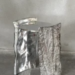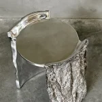Drawing from the deeply furrowed ironbark texture shaped by time, this sculptural table by Studio Kaytar captures nature’s raw beauty in solid aluminum, crafted using the traditional sand casting method. The rich bark texture contrasts with the smooth high-gloss mirror finish of the tabletop and detailing, balancing the organic with the refined.