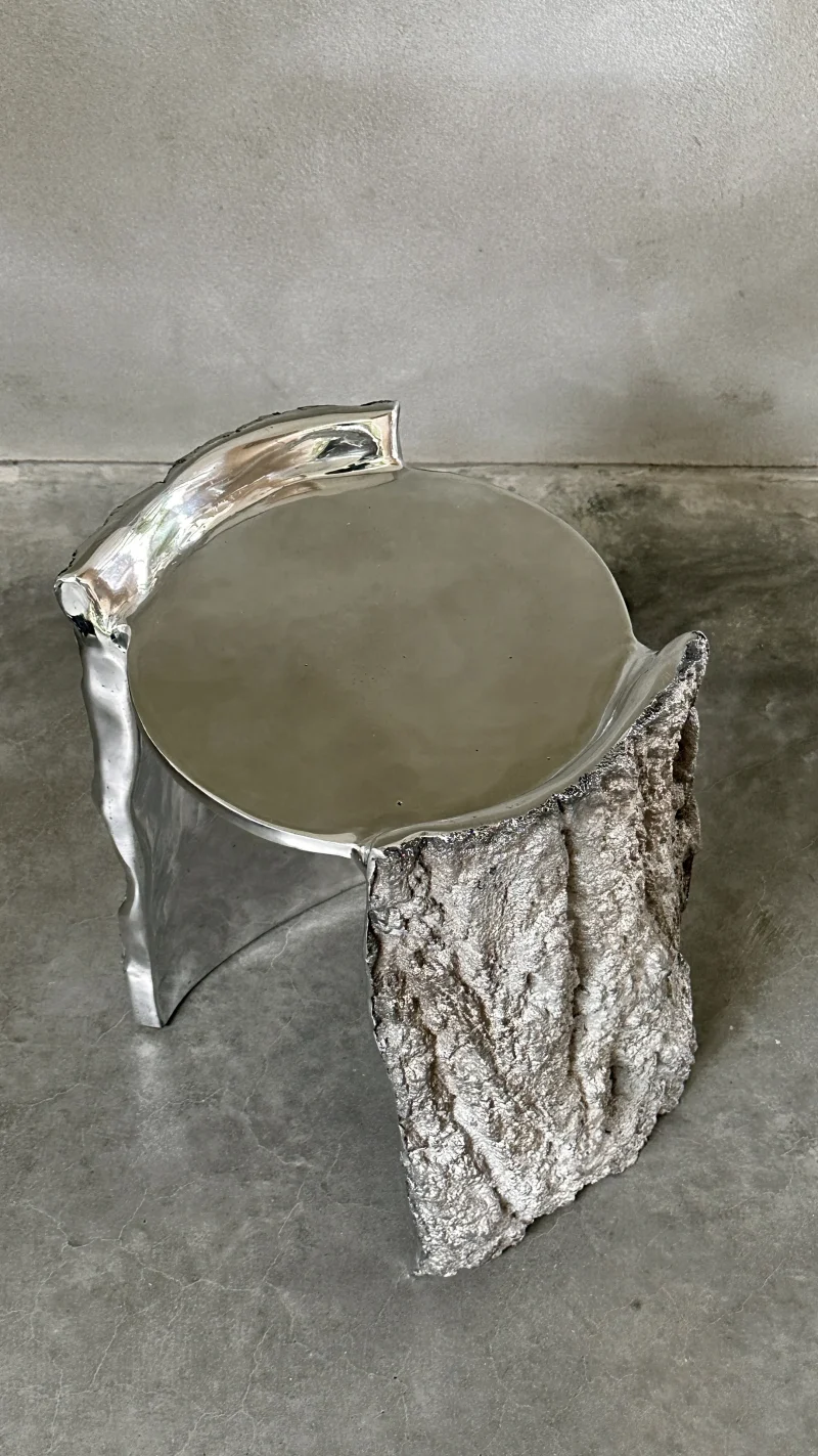 Drawing from the deeply furrowed ironbark texture shaped by time, this sculptural table by Studio Kaytar captures nature’s raw beauty in solid aluminum, crafted using the traditional sand casting method. The rich bark texture contrasts with the smooth high-gloss mirror finish of the tabletop and detailing, balancing the organic with the refined.