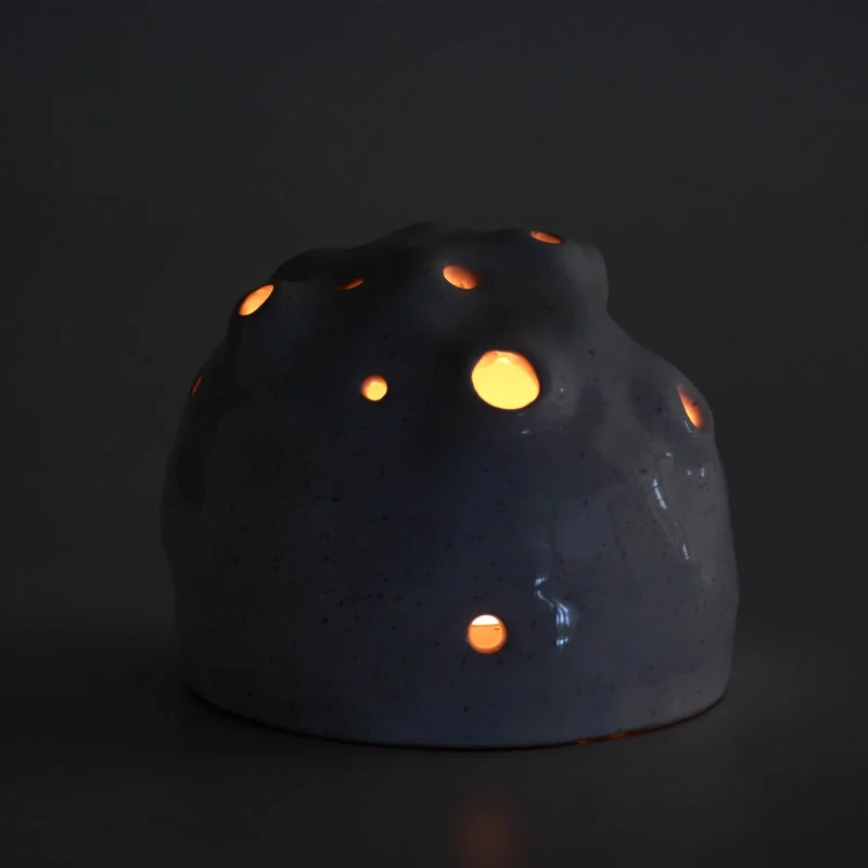 Hand-built ceramic candle shader with holes by SIUP Studio.