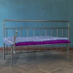 A small silver-covered bird sculpture, delicately perched on the handle, introduces a poetic contrast—softening the rigid metal with a symbol of fragility and freedom. Through this juxtaposition, the Barricade Daybed No. 2 becomes more than furniture; it is a reflection on space, power, and resilience, blurring the boundary between design and sociopolitical commentary.