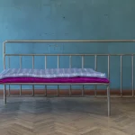 This bed comes with mattresses in different colors. Each mattress is made from found fabric, making every piece unique.