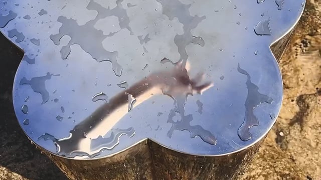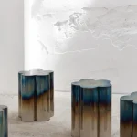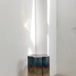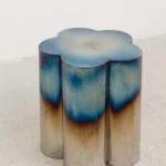 Often inspired by nature, this time FURN OBJECTS went to explore our roots, deriving inspiration from the cultural heritage of Ukraine. This table, shaped like the “barvinok” flower, tells a story of a well-balanced character, combining strength and determination with serenity and peace. We translated it by turning metal into the gentle shape of five petals and using fire to reach the soft gradient effect.