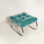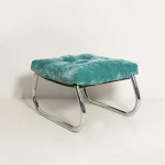 This Modernist Bauhaus–inspired Art Deco footstool features a sleek chrome frame and clean, geometric lines characteristic of early 20th-century design movements. Fully restored, the piece has been meticulously cleaned to reveal the brilliance of its original chrome finish and upholstered with new, high-quality fabric that complements its minimalist elegance. Perfect as a statement piece in a living room, bedroom, or office, this footstool blends functional comfort with timeless modernist style, making it a collectible addition for enthusiasts of Bauhaus and Art Deco furniture.
