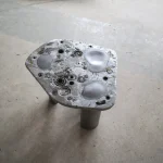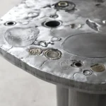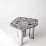 Studio Kloumi’s table takes inspiration from Bauxite, the main ore of aluminum. The designer chose cast aluminum for its strength and clean, metallic look.