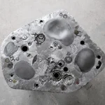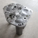 After that, they poured in the molten aluminum. The metal scraps reacted in unique ways, creating unexpected textures and patterns. As a result, the surface feels raw, rich, and full of detail.