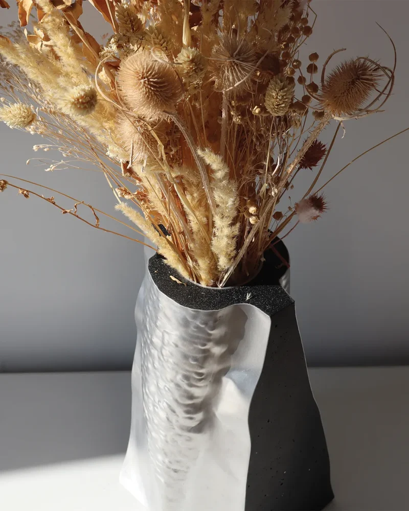 Rather than smoothing away imperfections, Emilia embraces marks left by tools, gravity, and casting. Her objects carry visible traces of their making — cracks, bubbles, and seams that speak to the physical relationship between maker and material. Each piece sits between sculpture and design: functional in intention, but unapologetically raw in appearance.