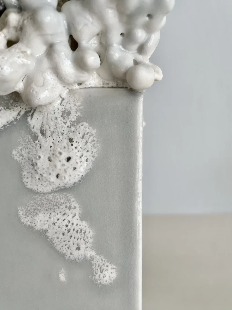 The white perfection of the porcelain is contrasted by the rich and complex textures of the glazes revealing the beauty in both.