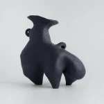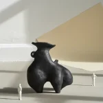 This black stoneware vessel by Not Yet Ceramics transcends traditional form, adopting a creature-like presence that blurs the line between the organic and the abstract. Its sculptural silhouette and tactile surface evoke an imagined being, seemingly frozen in mid-motion, as if caught between movement and stillness.