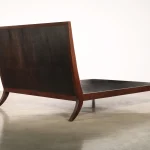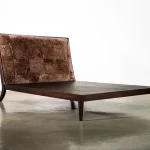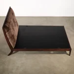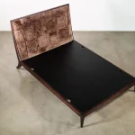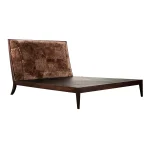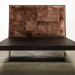 Belgrano Sheepskin and Exotic Wood Contemporary Designer Bed from Costantini. The Belgrano bed from Costantini is handmade using solid wood (shown in smoked oak) and an upholstered headboard, shown in sheepskin, but available in any fabric, leather or COM/COL. It features an ergonomic headboard that eliminates the need to create “pillow structures” to help one sit up for dining, working or anything else that’s best done in bed.